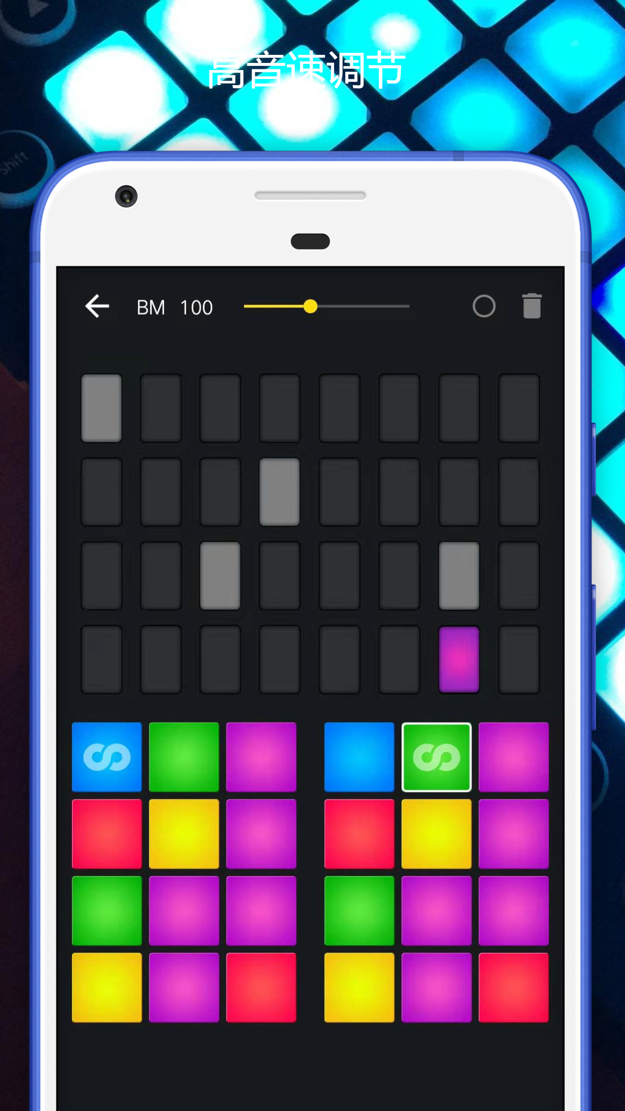 2. 内置12种高品质打击音色,可自由组合创建个性化音垫布局