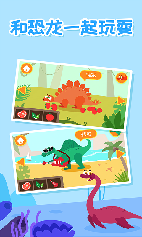 2. 点击任意恐龙图标,可听名称发音、观看简短动画并触发互动小任务