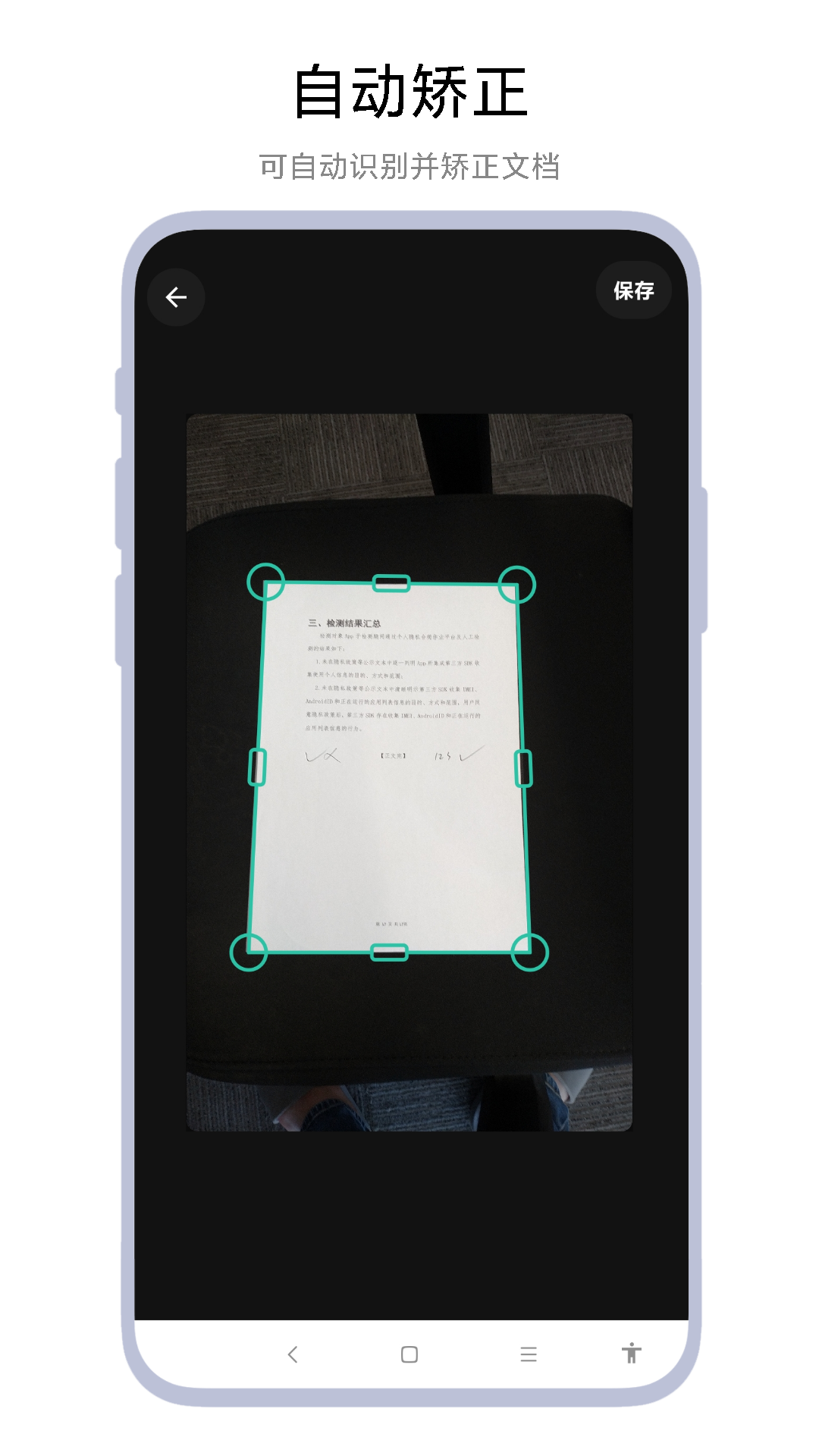 2. 对准文档,保持四边入框,系统自动提示对焦与捕获