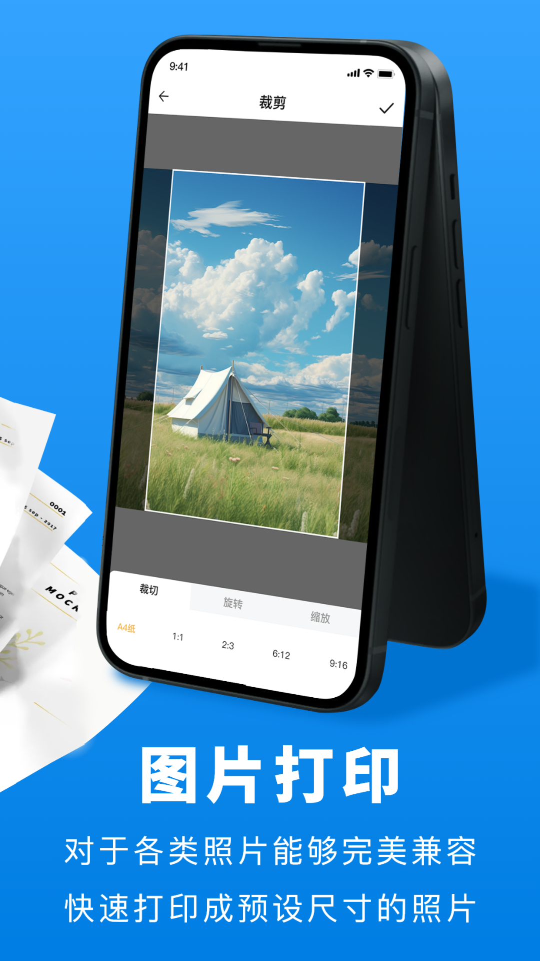 3. 选择文档、照片或直接调用相机拍摄内容,设置纸张尺寸、份数等参数后点击打印/扫描