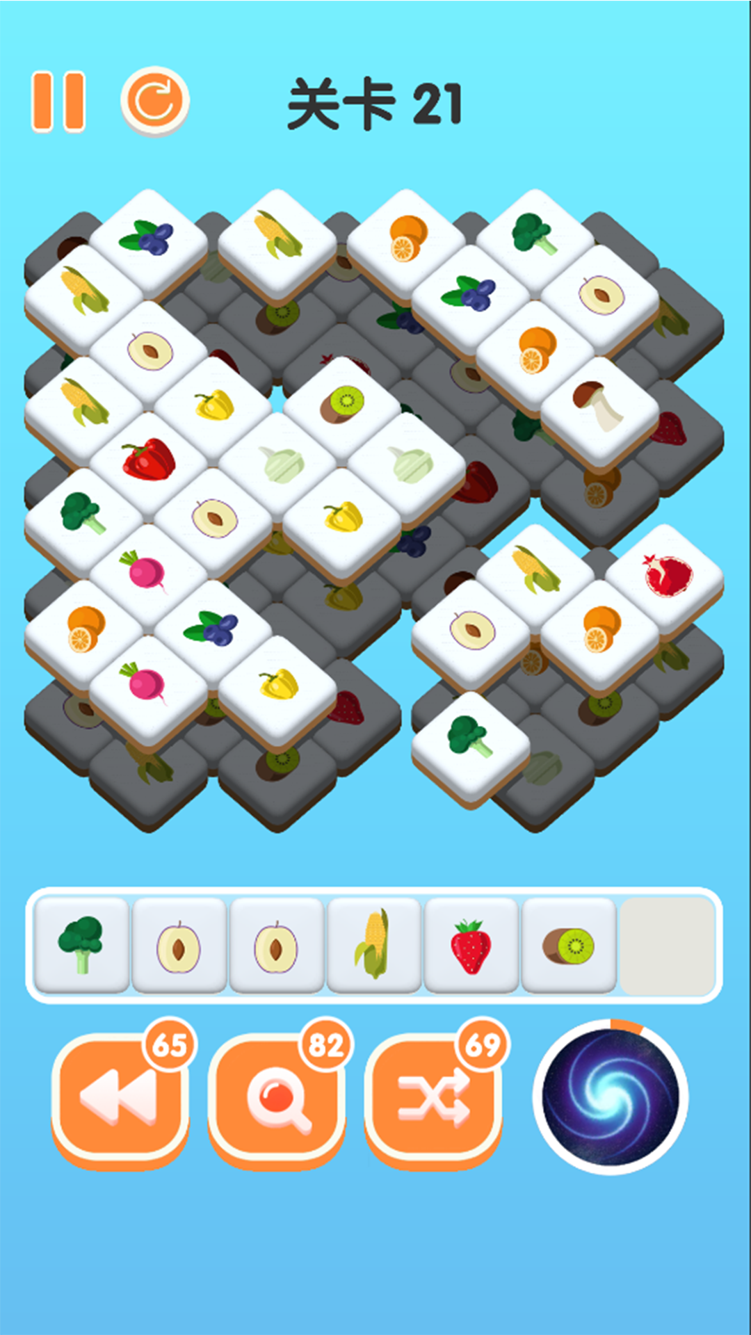 2. 滑动相邻元素交换位置,使三个及以上相同图标呈横/竖直线排列即可消除