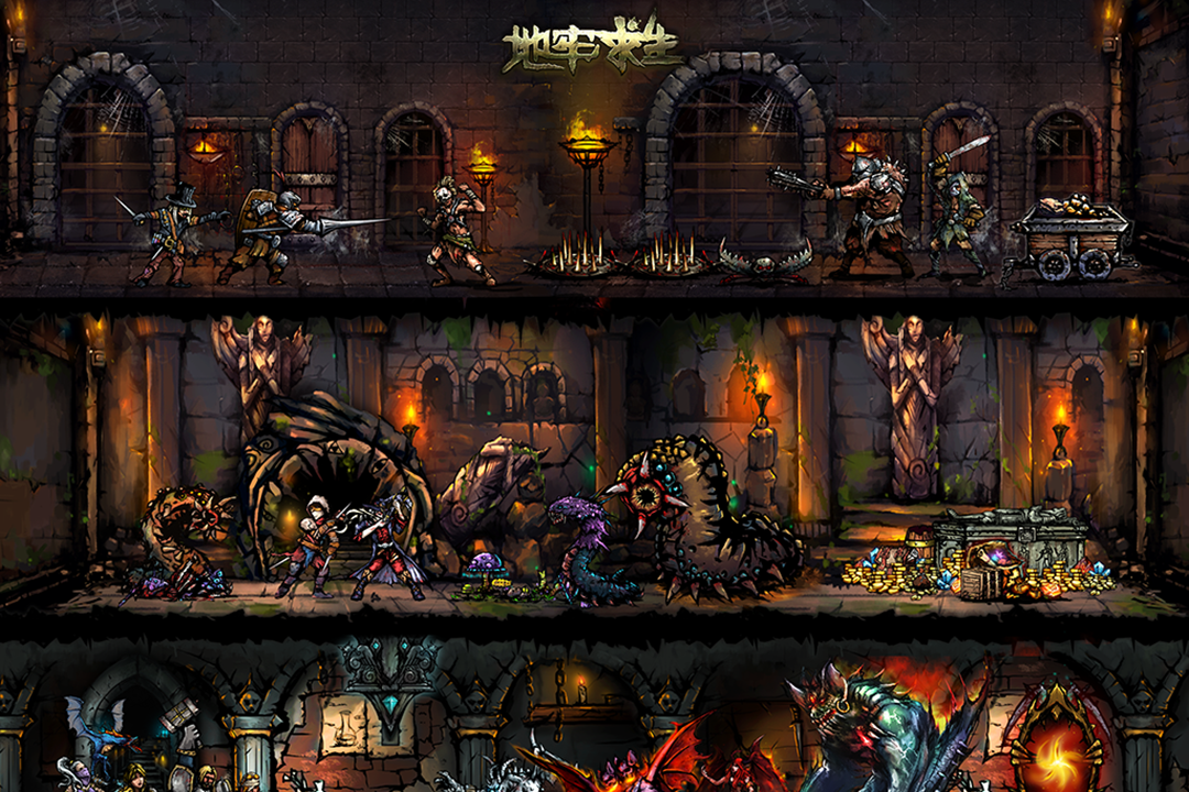 4. 全手绘风格美术与沉浸式音效设计,营造压抑紧张又富有质感的地牢氛围;