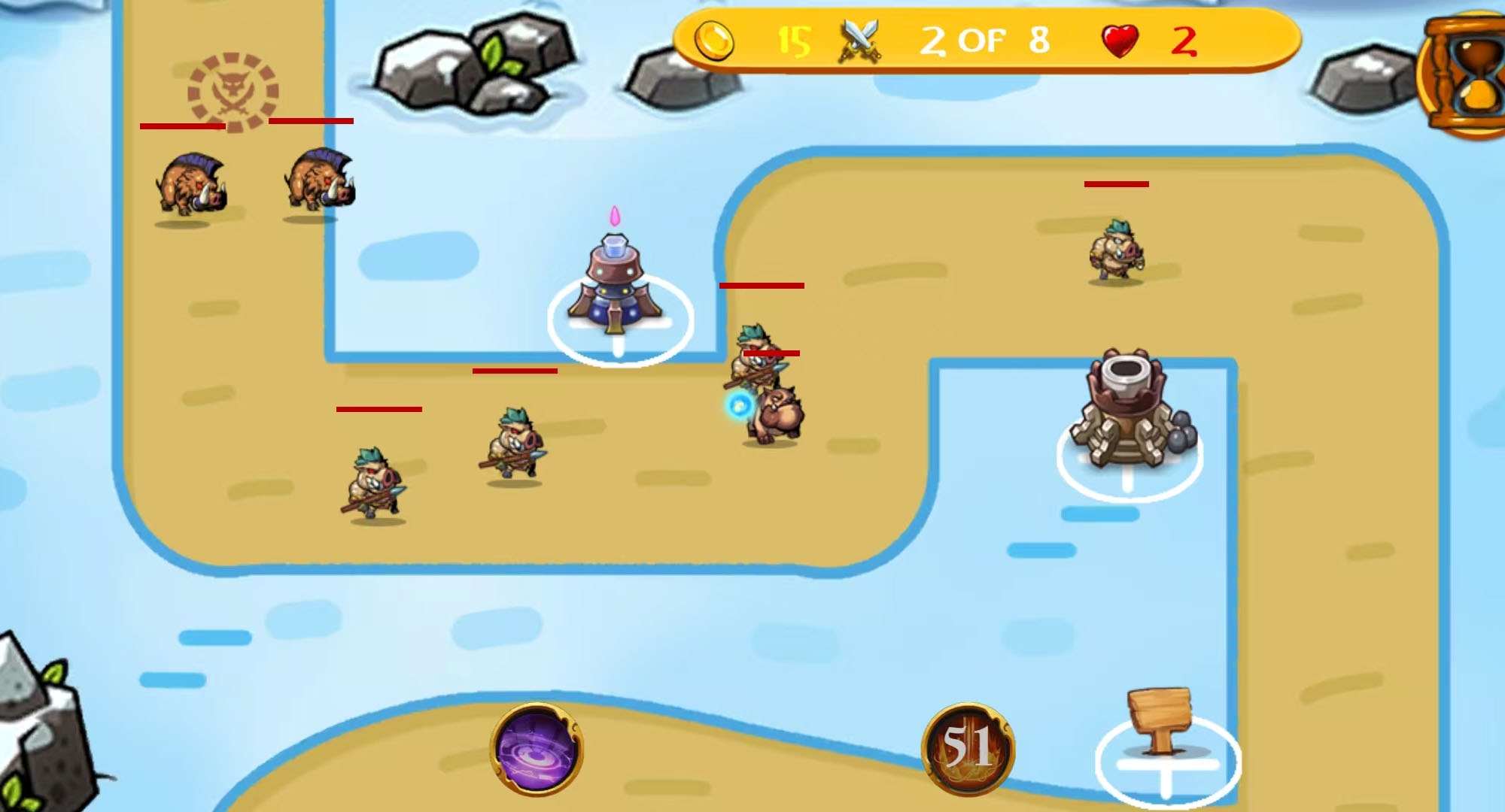 2. 在关卡中点击空地选择防御塔类型,拖拽至指定位置完成部署
