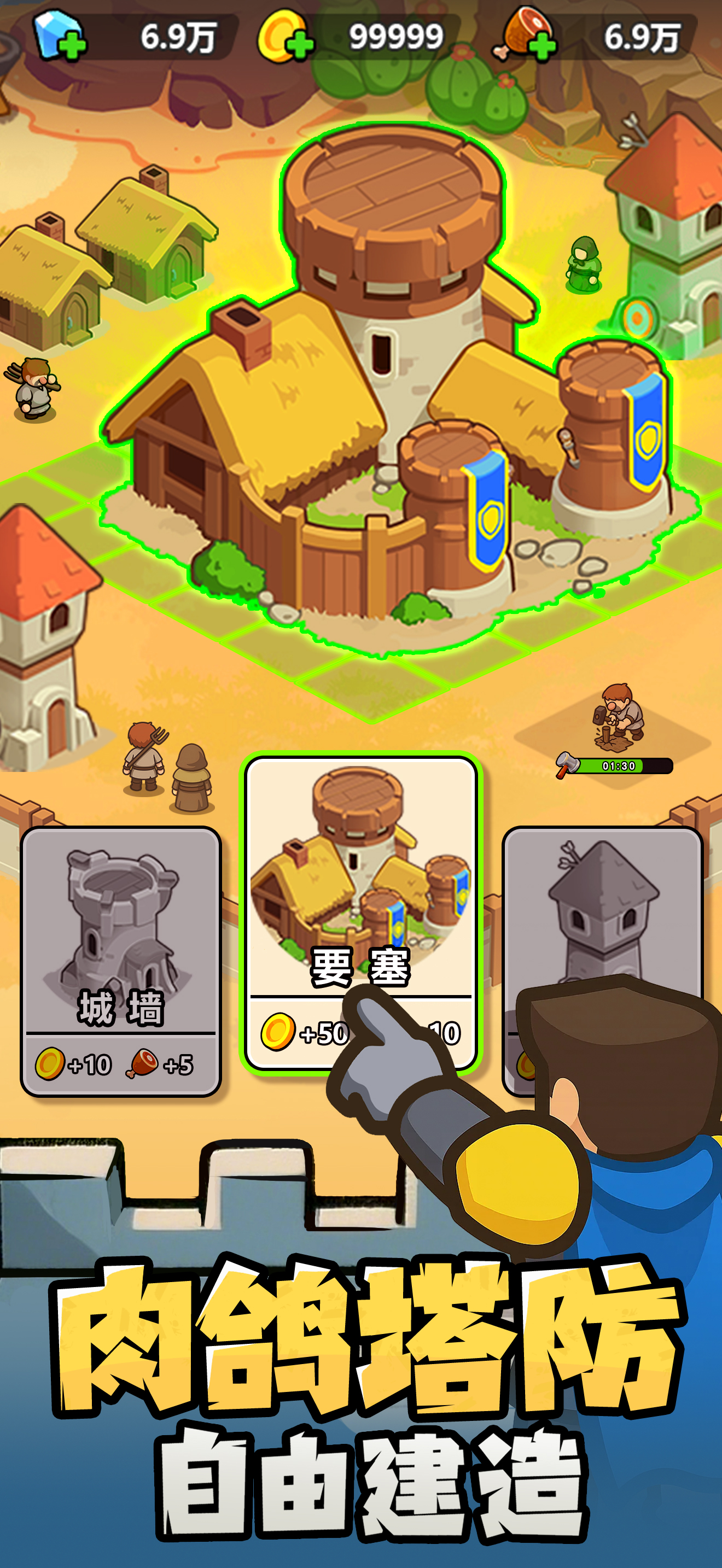 1. 首次启动后跟随新手引导,了解基础建造、升级与出售操作