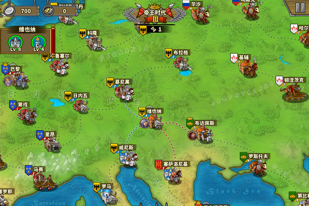 3. 军队部署:在地图界面长按目标区域,选择已训练部队进行移动或攻击;支持多支部队分组操作。
