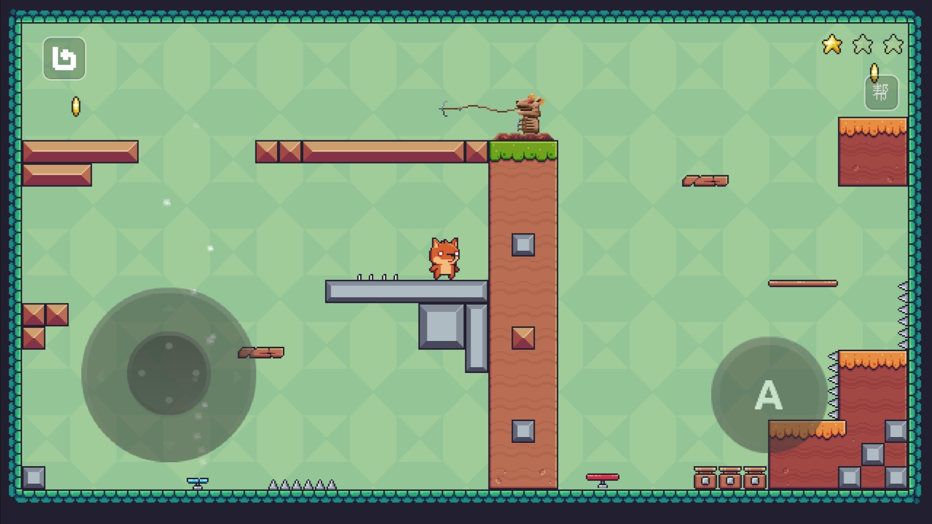 2. 拖动小狐狸角色,避开障碍物,收集星星完成关卡目标