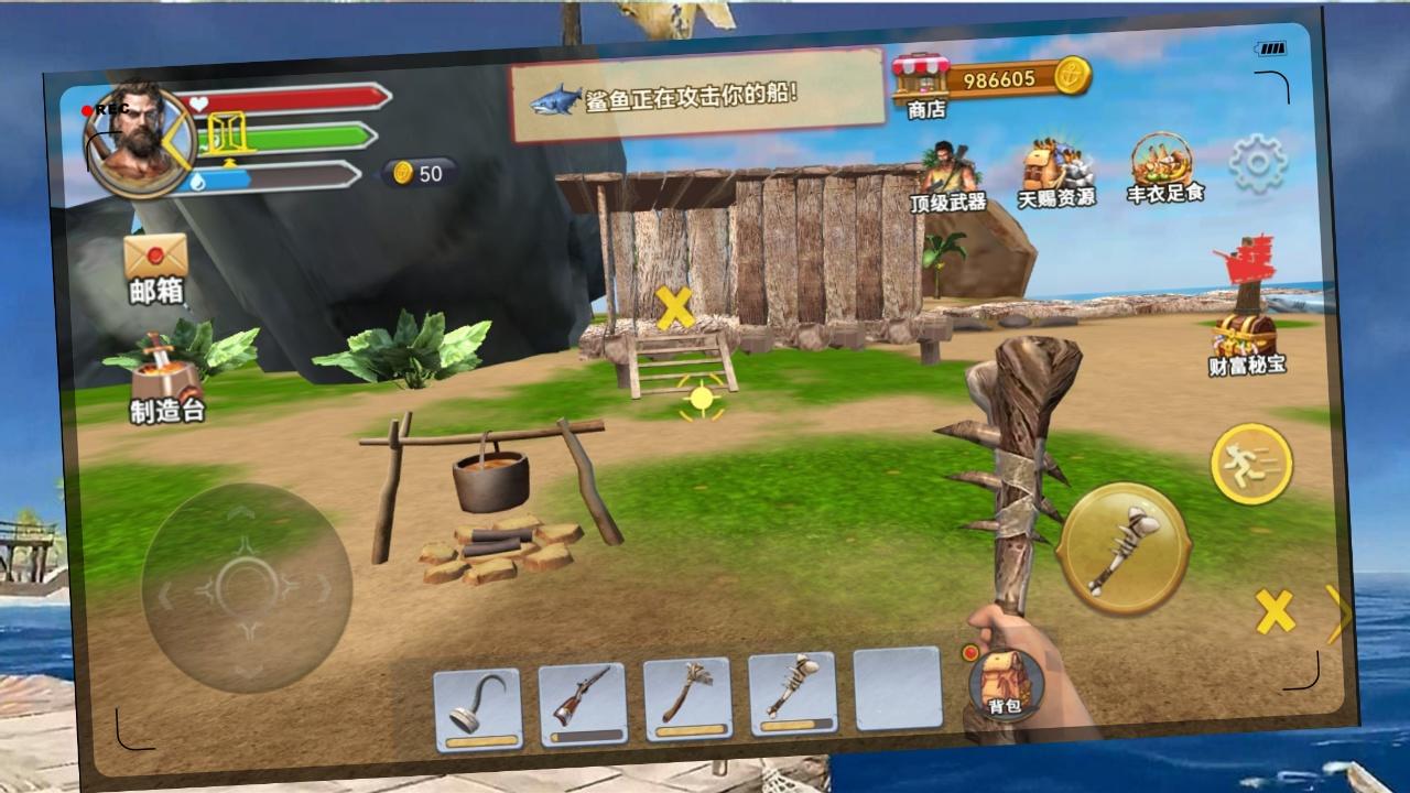 1. 启动游戏后,优先收集漂浮物(木板、塑料瓶)以扩充木筏或搭建基础庇护所